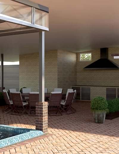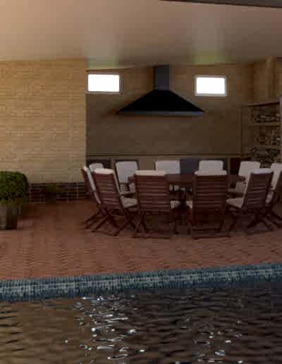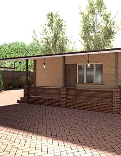 - эскизное предложение по благоустройству внутреннего дворика загородного дома с зоной Pin Up
