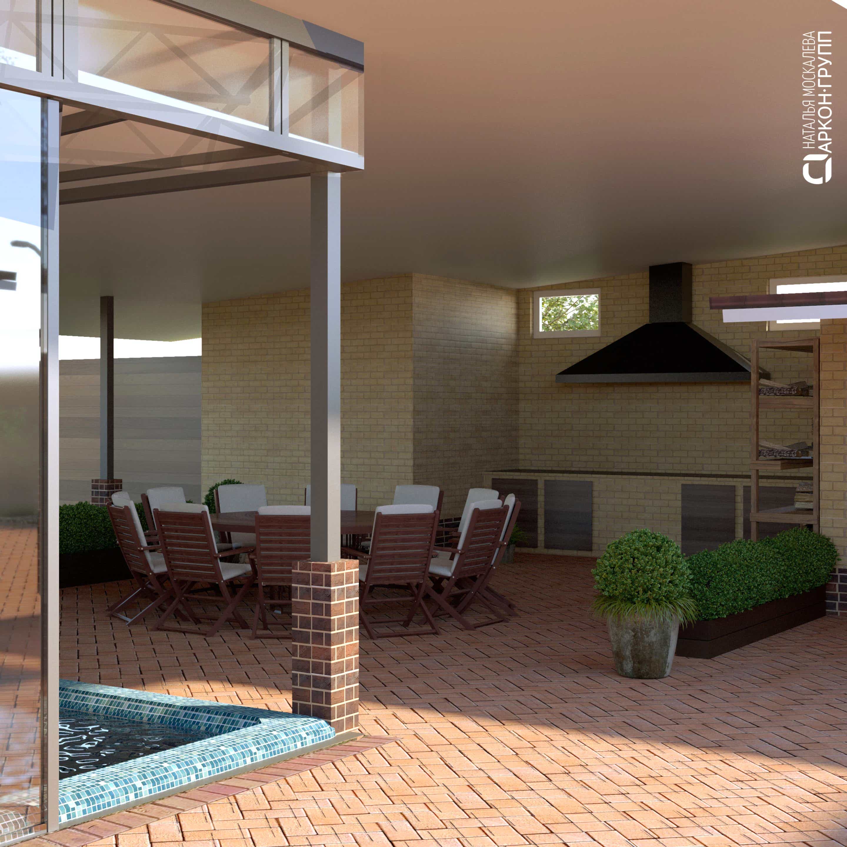 - эскизное предложение по благоустройству внутреннего дворика загородного дома с зоной Pin Up